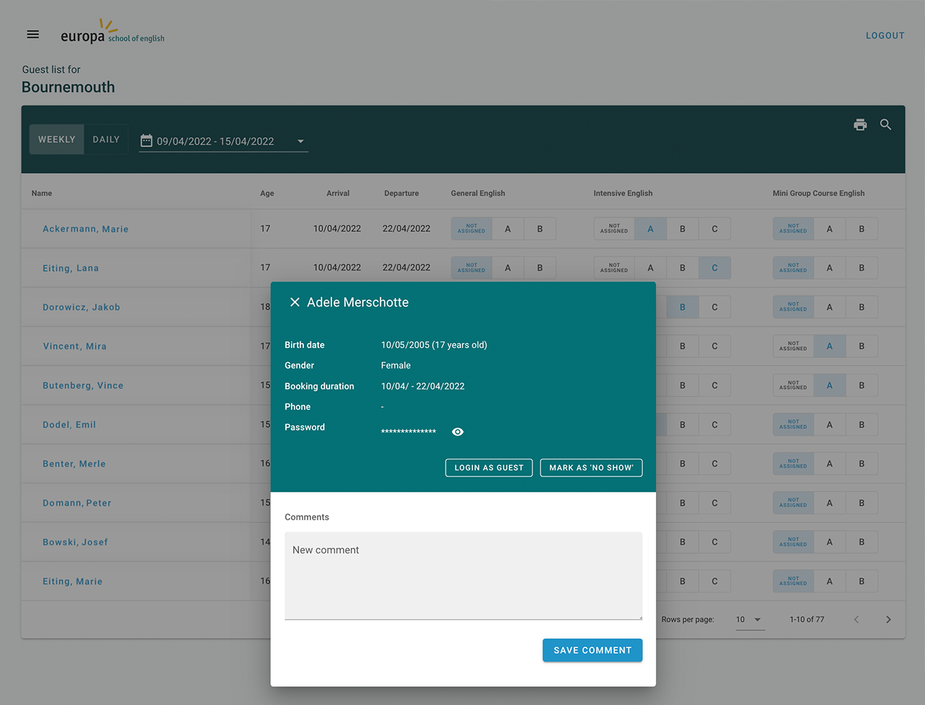 Lehrerinnen, Betreuern und Reiseleiterinnen erlaubt diese App, den Anwesenheitsstatus ihrer Gäste zu dokumentieren und Abwesenheiten personenbezogenen zu protokollieren – was insbesondere bei minderjährigen Sprachschülern von Bedeutung ist.